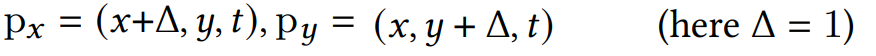 현재 픽셀 p와 이전 또는 이후 프레임 픽셀 p'가 같은 위치에 매핑되어야 한다.