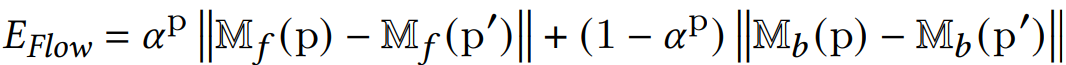 (표준 flow 일관성 검사가 일치하지 않으면 W=0, 일치하면 W=1이다. 이는 신뢰할 수 있는 픽셀에만 optical flow loss를 적용하는 것을 의미한다.)
