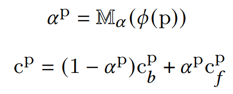 색상과 불투명도를 조합하여 재구성. (다른 네트워크에서는 위치 인코딩이 사용되지 않음)