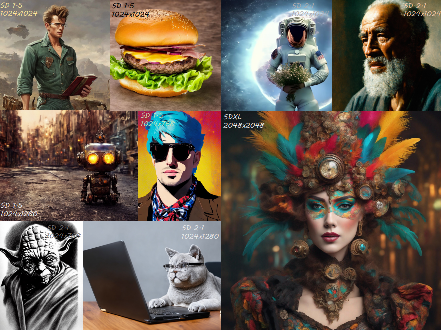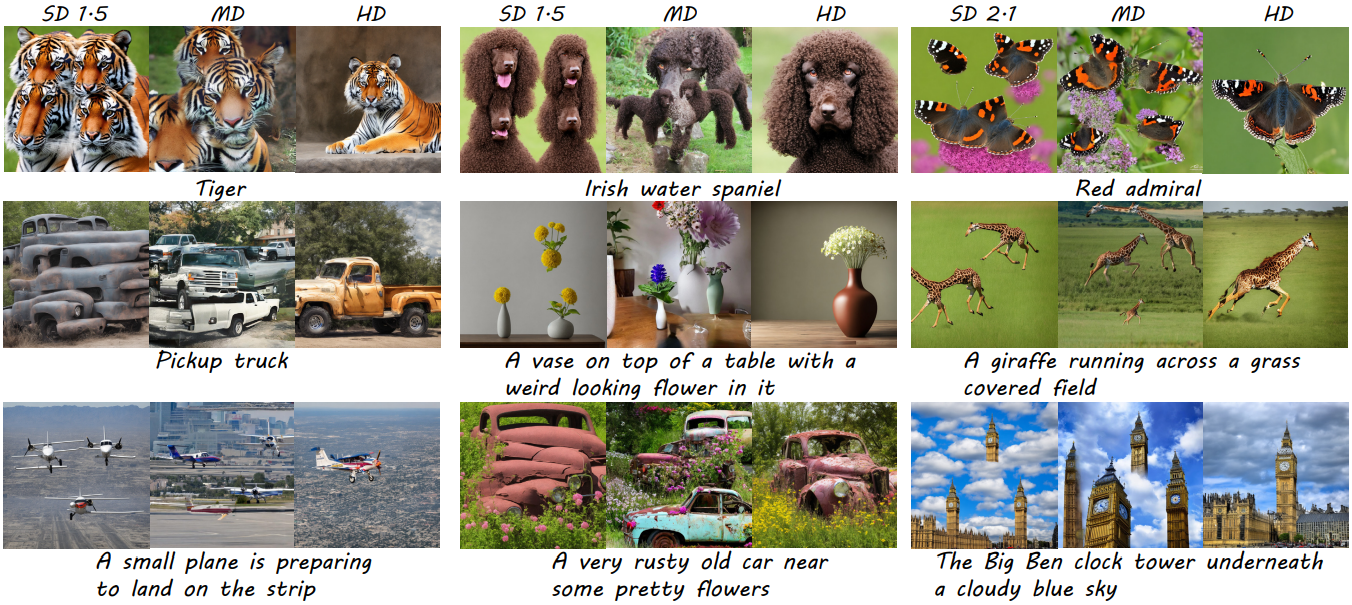 Stable Diffusion은 초고해상도 이미지를 생성하는 데 시간이 매우 오래 걸리며 객체 중복이 발생한다.