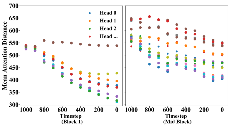 하지만 Stable Diffusion의 transformer block은 하나의 self-attention module만 가지고 있어 Swin transformer의 window shifting과 호환되지 않는다. 따라서 timestep에 따라 무작위로 window stride를 선택하는 방법을 사용한다.