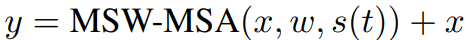 시간이 많이 소요되는 global self-attention 대신 Modified Shifted Window Multi-head SelfAttention (MSW-MSA) 제안.