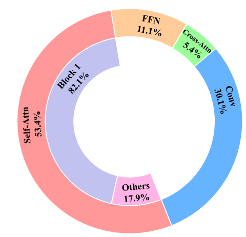 고해상도 블록의 self-attention에서 압도적으로 많은 시간이 소요된다.