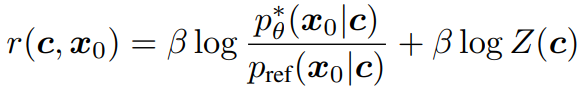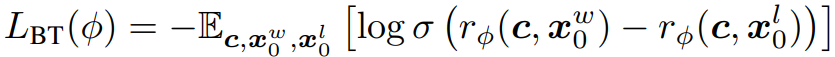 조건 c에서 보상 모델 r이 접근할 수 있는 ranked pair xwin, xlose에 대해 Bradley-Terry model은 인간 선호도를 다음과 같이 규정한다.