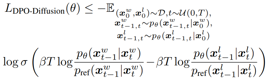 Direct Preference Optimization(DPO)을 확산 모델에 적용한 Diffusion-DPO 제안