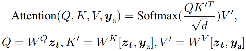 추출된 feature는 zt에 concat 하여 spatial self-attention에 사용됨.