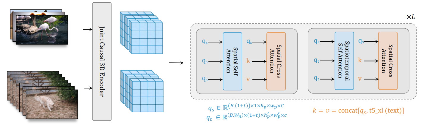 Joint training의 경우 spatial window cross-attention만 사용. Spatiotemporal window는 비디오에 대해서만 훈련할 때 사용된다.