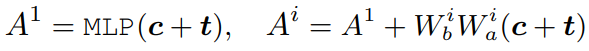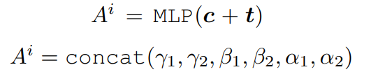 DiT에서 적응형 레이어 정규화(AdaLN) 피라미터는 다음과 같이 구해지는데,
