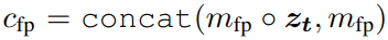 2개 이하의 이전 프레임을 조건화하여 latent의 채널 차원에 연결. (m = mask)