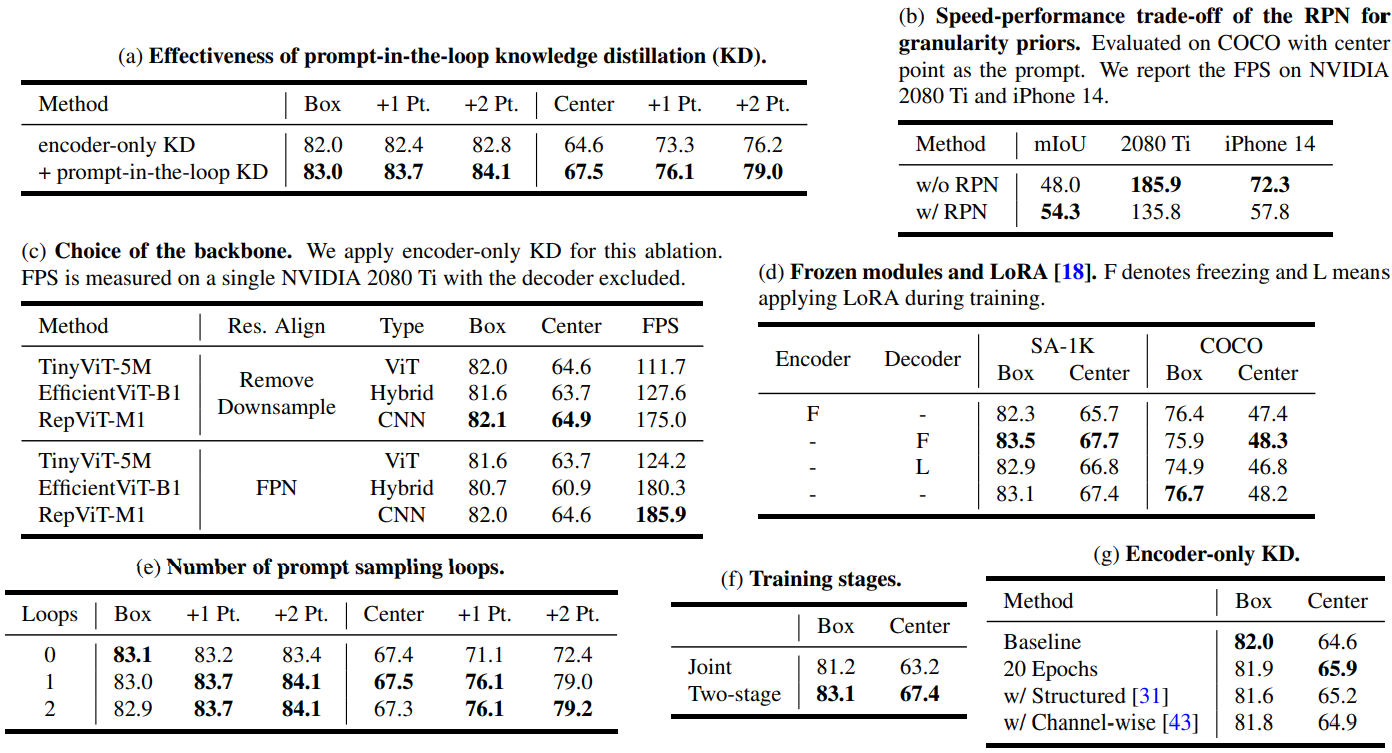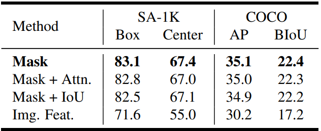 - 디코더의 fine-tuning이 일반화 능력에 위협이 된다. (Point로 fine-tuning 시 box 성능이 저하됨.)