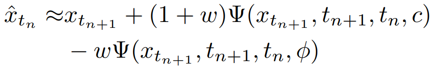 CFG는 일관성을 위해 훈련 단계에서 교사 모델에서만 고정된 w 값으로 사용되며 추론 시에는 사용하지 않는다.