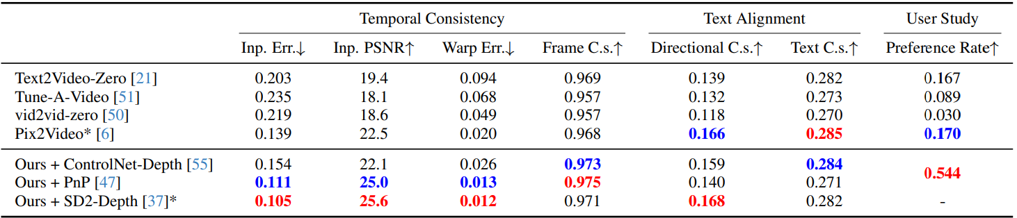 프레임 간에 self-attention token을 병합하여 계산 비용을 줄임과 동시에 시간적 일관성을 향상하는 VidToMe 제안