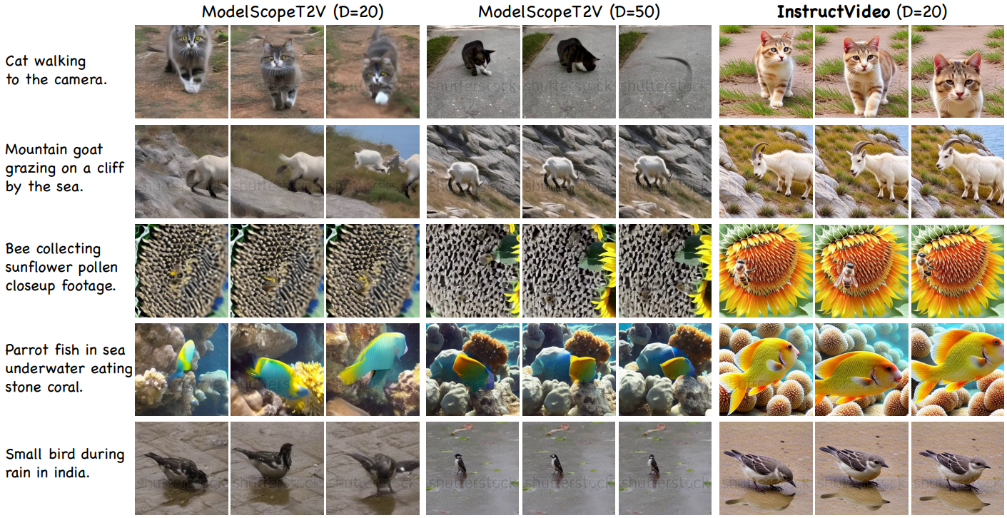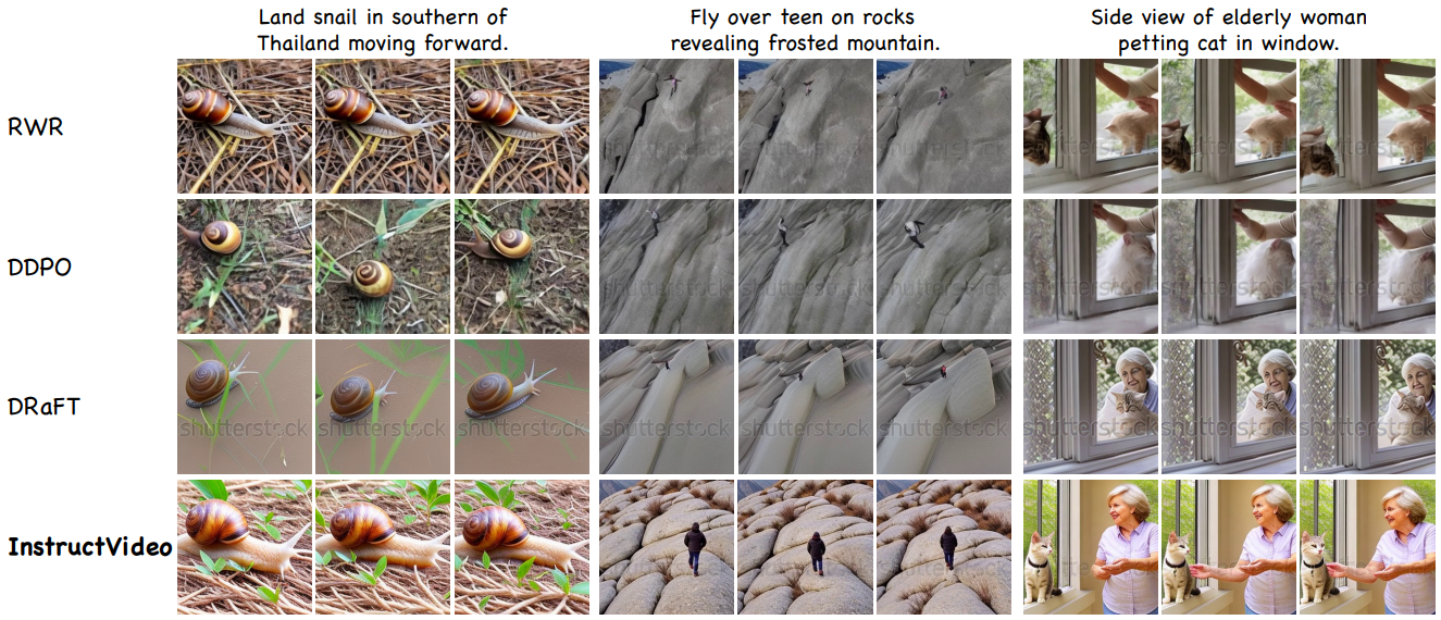 Human feedback을 통해 text-to-video 확산 모델을 fine-tuning 하는 InstructVideo 제안