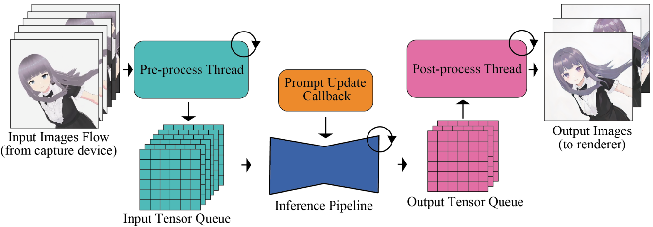 사람의 입력과 모델 처리량의 빈도 차이를 해결하기 위해 이미지 전처리, 후처리를 pipeline 외부로 이동하여 병렬로 처리한다.