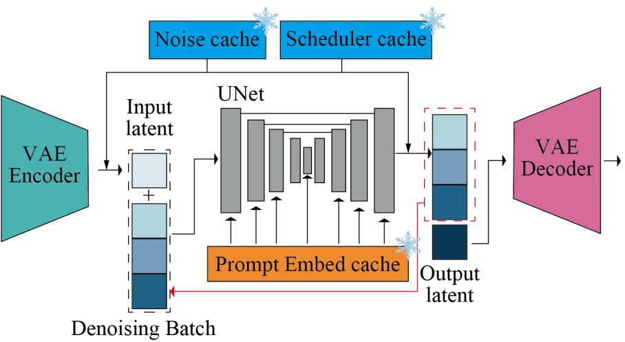 Prompt embedding과 noise schedule 미리 계산하고 캐시에 저장.