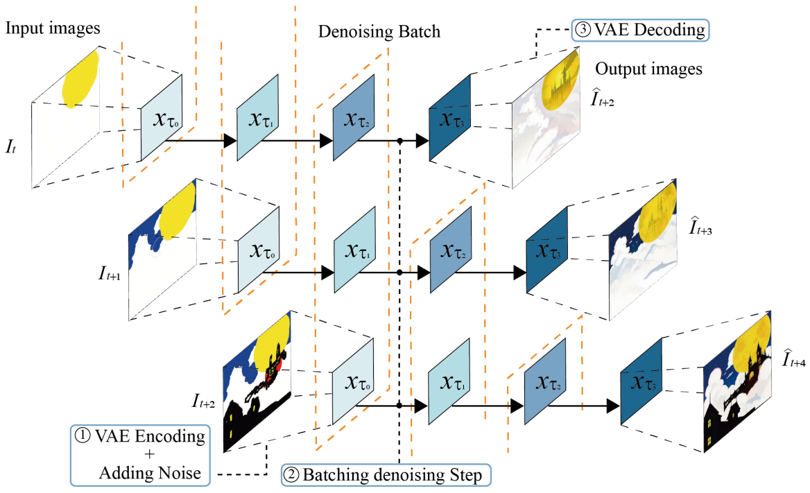 각 timestep에서 쓰일 노이즈를 미리 생성하고 캐시에 저장. 다른 프레임의 모든 같은 timestep에서 같은 노이즈를 사용한다.