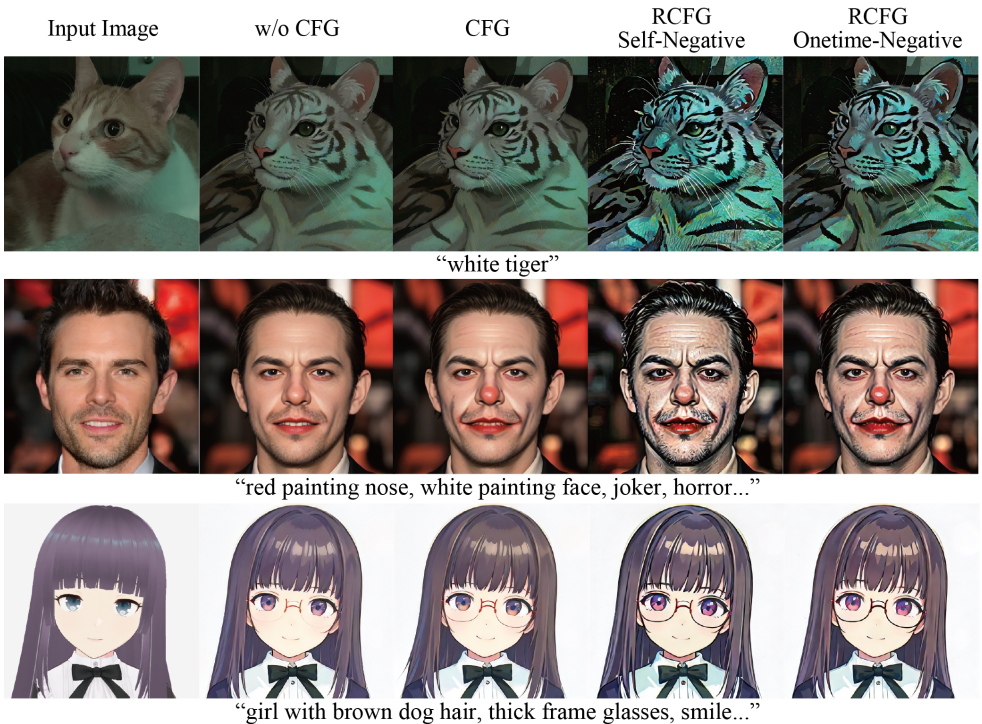 Onetime-Negative RCFG: x0 뿐만 아니라 진짜 negative condition의 분포와도 멀어지기 위해 denoising의 첫 step에서만 negative condition residual noise ϵτ0,c̄를 계산한다.