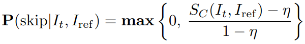 현재 입력과 과거 참조와의 코사인 유사도를 계산하여 process를 skip 할 확률을 결정한다.