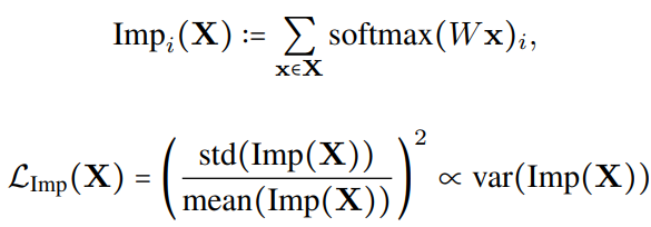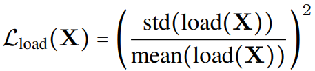 입력 배치 X와 g()의 가중치 W, 전문가 i에 대해 라우팅 출력의 softmax 합의 변동 계수: