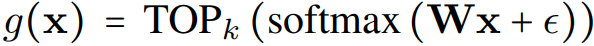 MoE와의 차이점은 top-k보다 softmax를 먼저 적용한다는 것이다. 노이즈의 표준 편차 = 1/E