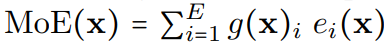 MoE는 라우팅 함수 g()를 통해 입력을 각 전문가 ei(x)에 할당한다.