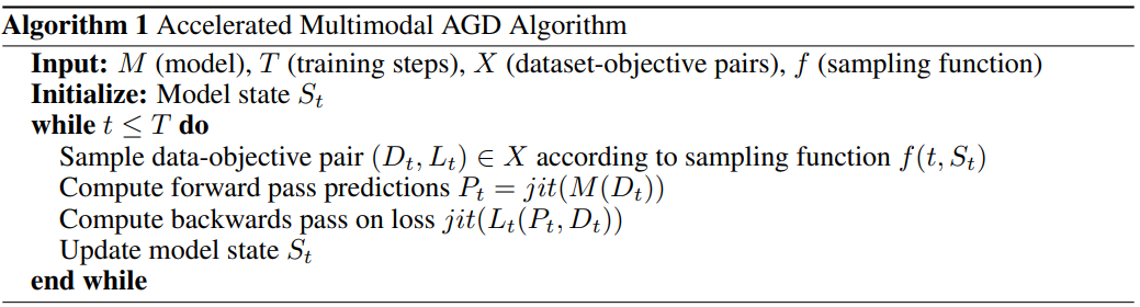 Multi-modal의 핵심 중 하나는 작업 확장성이다. 데이터와 손실 목표의 다른 조합은 교육 전반에 걸쳐 상호 교환 가능해야 하며, 새로운 데이터나 목표를 추가해도 메모리나 계산 오버헤드가 발생하지 않아야 한다.