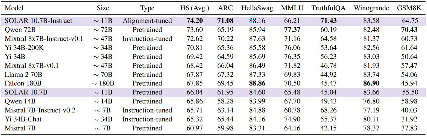 Depth up-scaling(DUS) 기술을 소개하고 DUS를 사용하여 구축한 LLM인 SOLAR 10.7B 소개