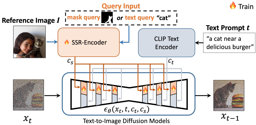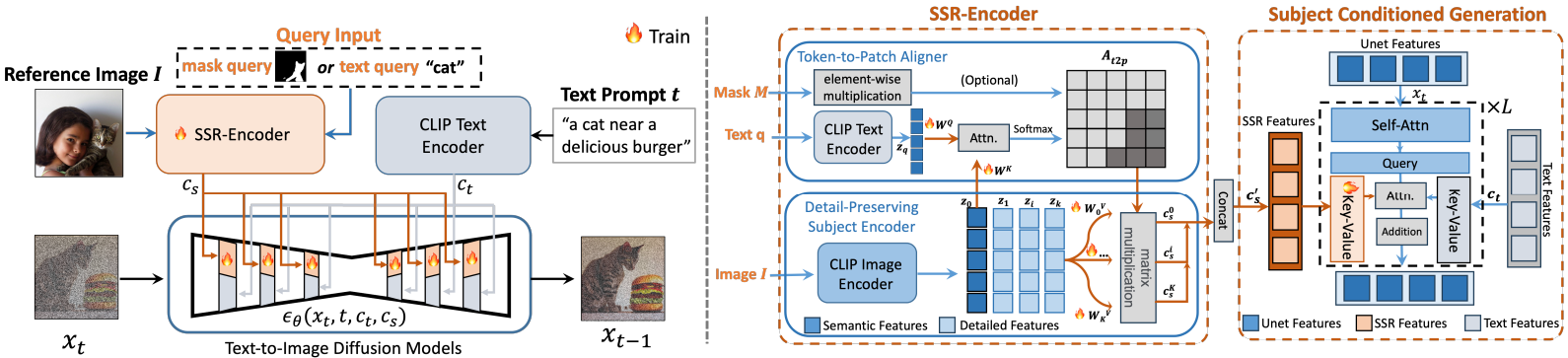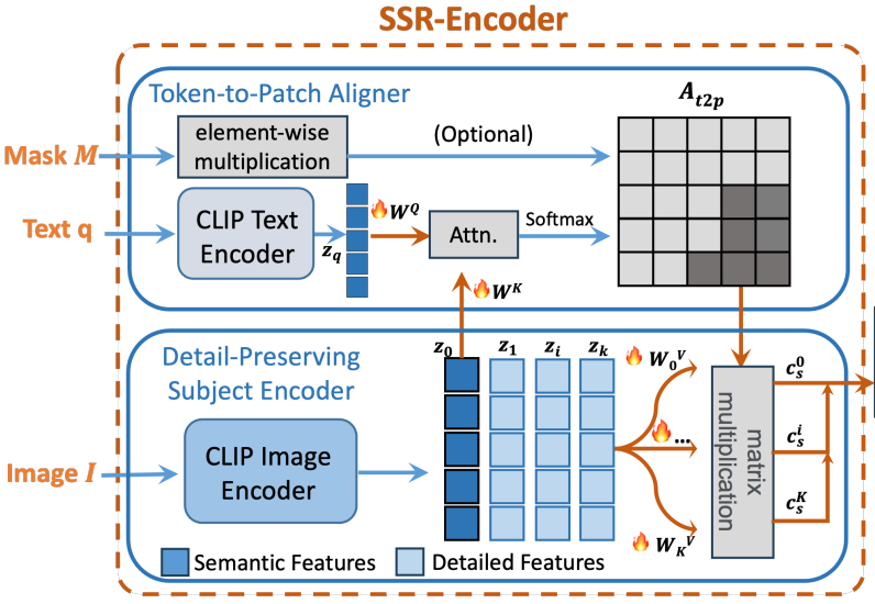 다양한 query modality에 대응하여 참조 이미지에서 피사체를 선택적으로 캡처할 수 있도록 설계된 SSR-Encoder 소개