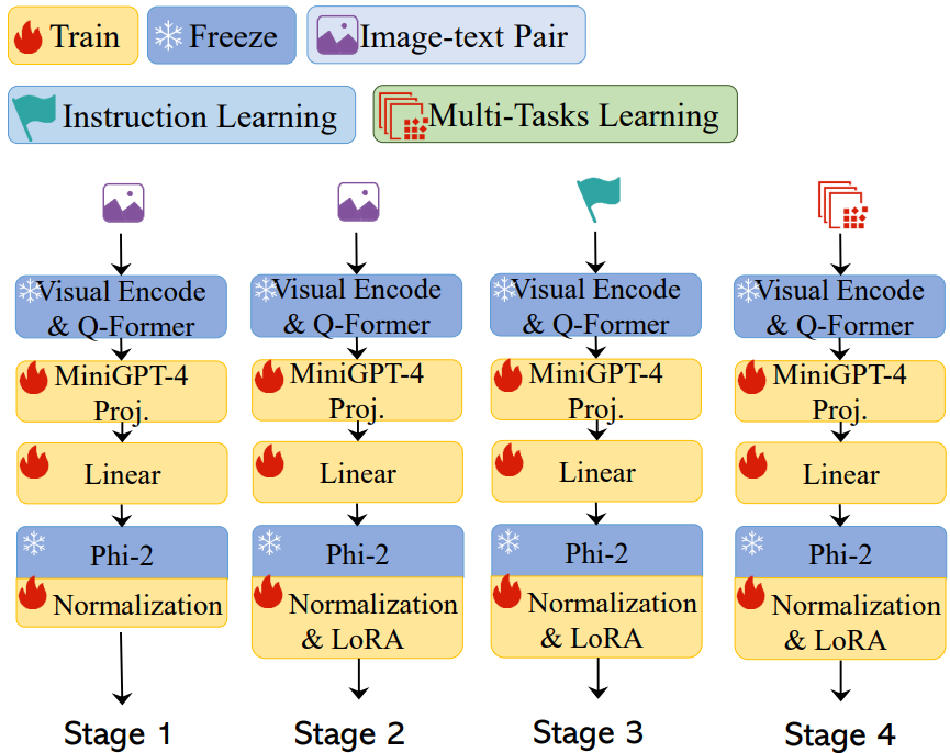 2.7B의 작은 크기에 비해 성능이 뛰어난 Phi-2 모델을 backbone으로 채택.