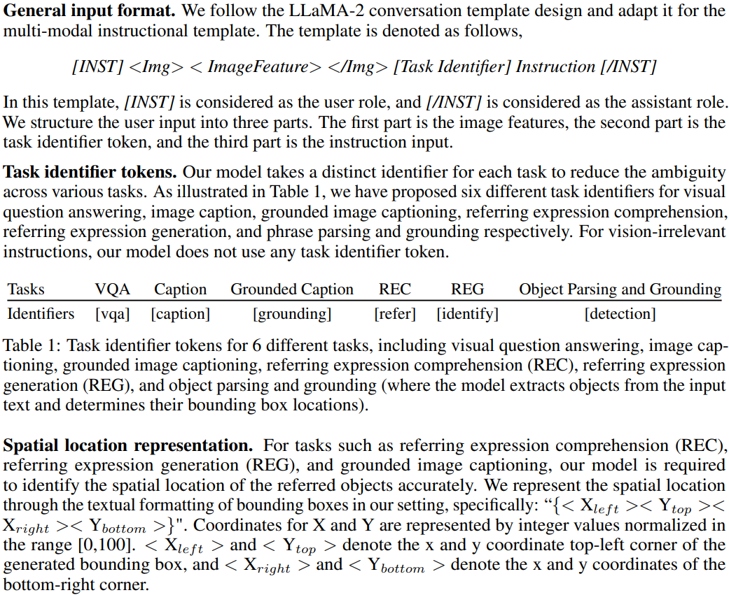 Multimodal 훈련에서 다양한 개별 작업을 처리하기 위해 MiniGPT-v2의 작업별 식별자를 사용한다.