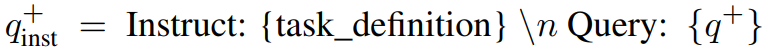 Query-document pair (q+, d+)가 주어지면 명령 템플릿을 적용한다.