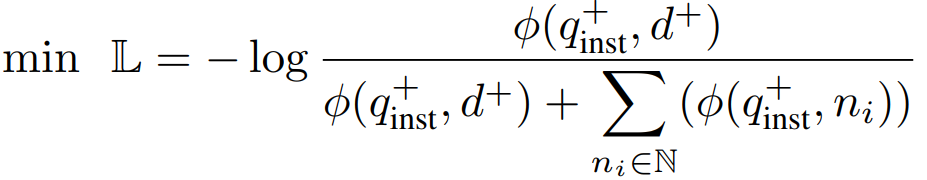 임베딩 모델(사전 훈련된 LLM)을 훈련하기 위해 배치 내의 negative에 대해 대조 학습에서 자주 사용되는 InfoNCE loss를 채택했다.