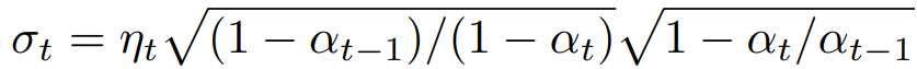 ηt가 0이면 DDIM, 1이면 DDPM이다.