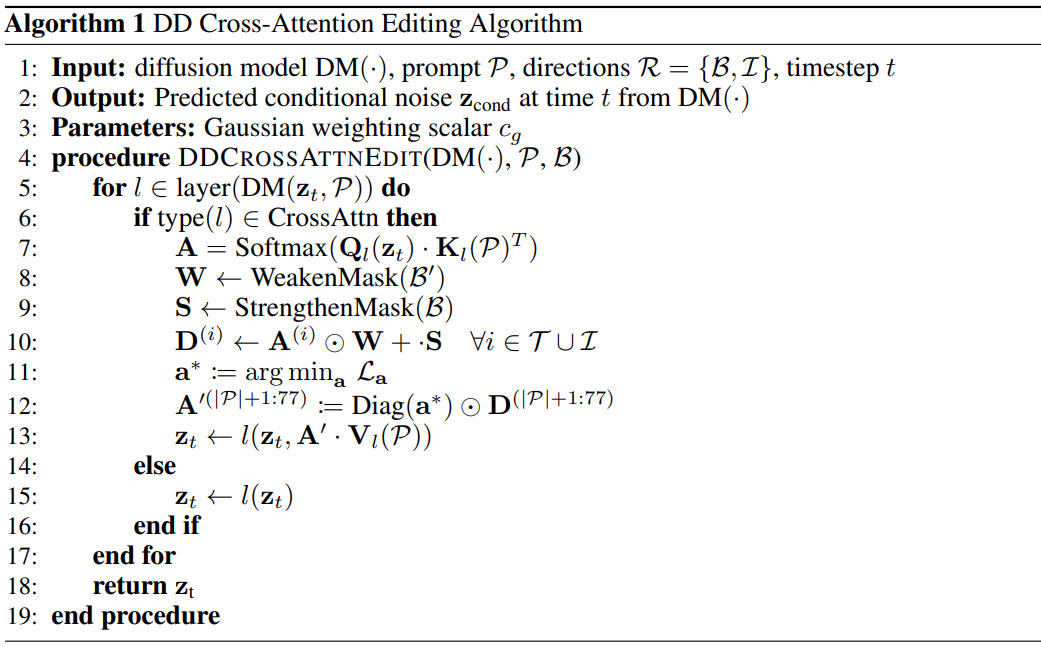 먼저 B가 주어지면 두 가지 함수를 사용하여 modified cross-attention map을 생성한다.
