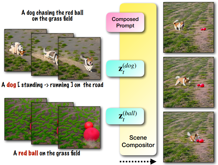 여러 개의 피사체를 생성하려는 경우 Directed Diffusion과 똑같이 각 피사체 zt(r)을 개별적으로 생성한 뒤 원래의 프롬프트 P에 대한 latent zt와 선형 보간 후 평균화한다.