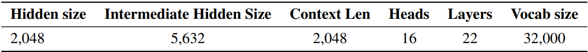 Chinchilla scaling raw에서 제시하는 것보다 훨씬 더 많은 토큰으로 훈련했을 때 작은 모델의 행동을 탐구하기 위해 3T 개의 토큰을 사용해 1.1B decoder-only transformer를 훈련한다.