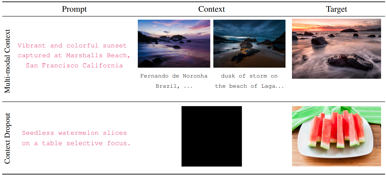 훈련 중 1 pair는 Instruct-Imagen의 prompt 및 target으로, 3 pair는 context로 제공된다.