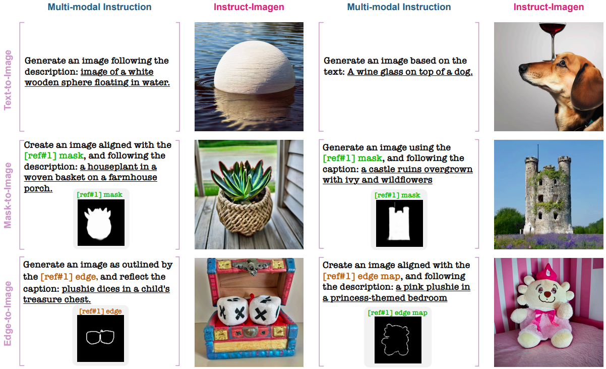 자연어를 사용하여 서로 다른 양식을 통합함으로써 다양한 생성 의도를 통일된 형식으로 표준화할 수 있는 Instruct-Imagen 제안