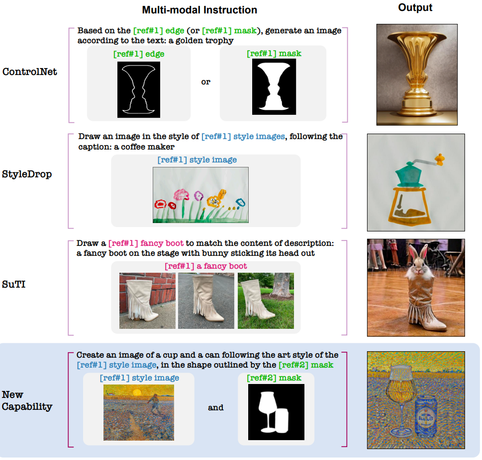 생성 모델을 자연어로 제어할 수 있도록 multi-modal instruction tuning.