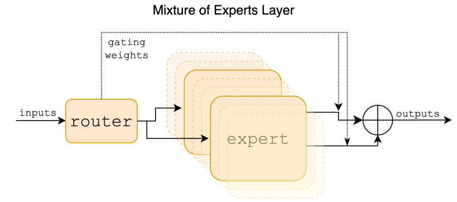 Mixture of Experts: gating network G를 통해 전문가를 선택한다.
