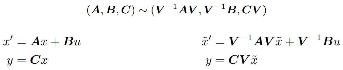 다음과 같이 SSM의 구성 요소인 행렬들을 켤레화(conjugation) 해도, 동일한 입력 u에 대해 동일한 출력 y를 갖는다.