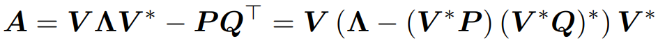 V = unitary matrix, Λ = diagonal matrix, P&Q = row-rank matrix
