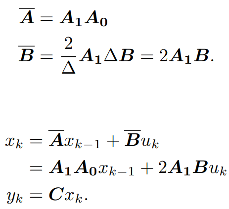 수식은 몰라도 된다. 중요한 것은 이산 시간 간격 ∆에 대한 A를 Ā로 표기한다는 것이다.