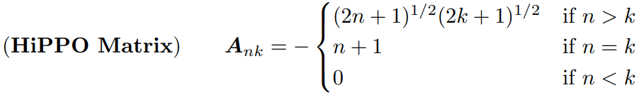 HiPPO를 행렬의 형태로 구현하여 SSM에 적용하면 SSM의 성능을 향상할 수 있다. (A = HiPPO matrix)