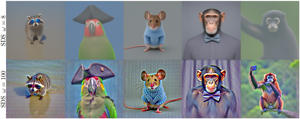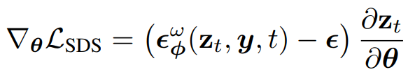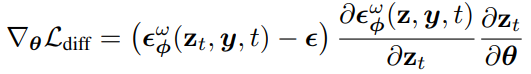 (SDS와 마찬가지로 jacobian term을 생략하고 weighting term 또한 생략했을 때 경험적으로 품질이 좋아짐.)