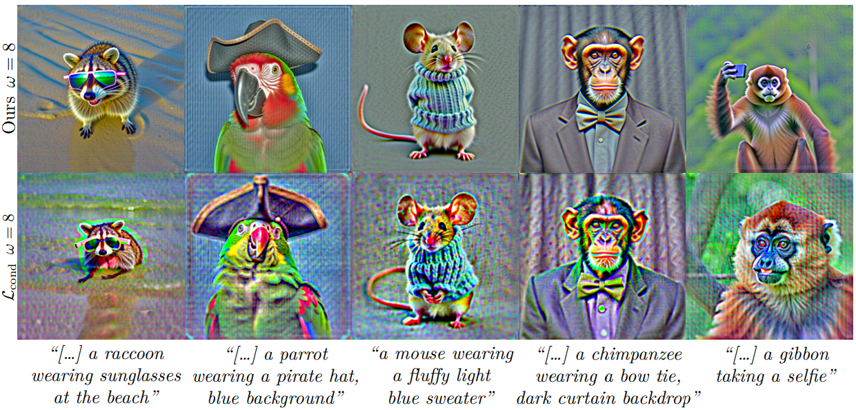 Lcond는 항상 prompt를 지키기 위해 과도하게 노력하여 과도한 색상이나 아티팩트를 가진 manifold에서 벗어난 gradient를 생성하고, Lproj는 이에서 기인하는 고주파 디테일을 제거하려고 하여 흐릿한 이미지를 생성하는 것이었다.