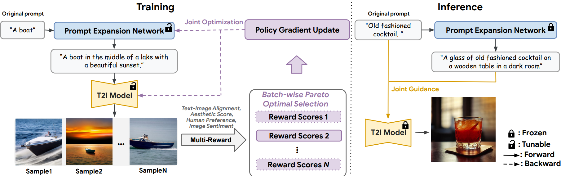 단순한 prompt는 상세한 이미지를 생성하지 못하기 때문에 prompt를 확장하고, 확장된 prompt ĉ 앞에 보상 식별자 "<reward k>"를 붙인 다음 이 prompt를 기반으로 N개의 이미지를 생성한다.