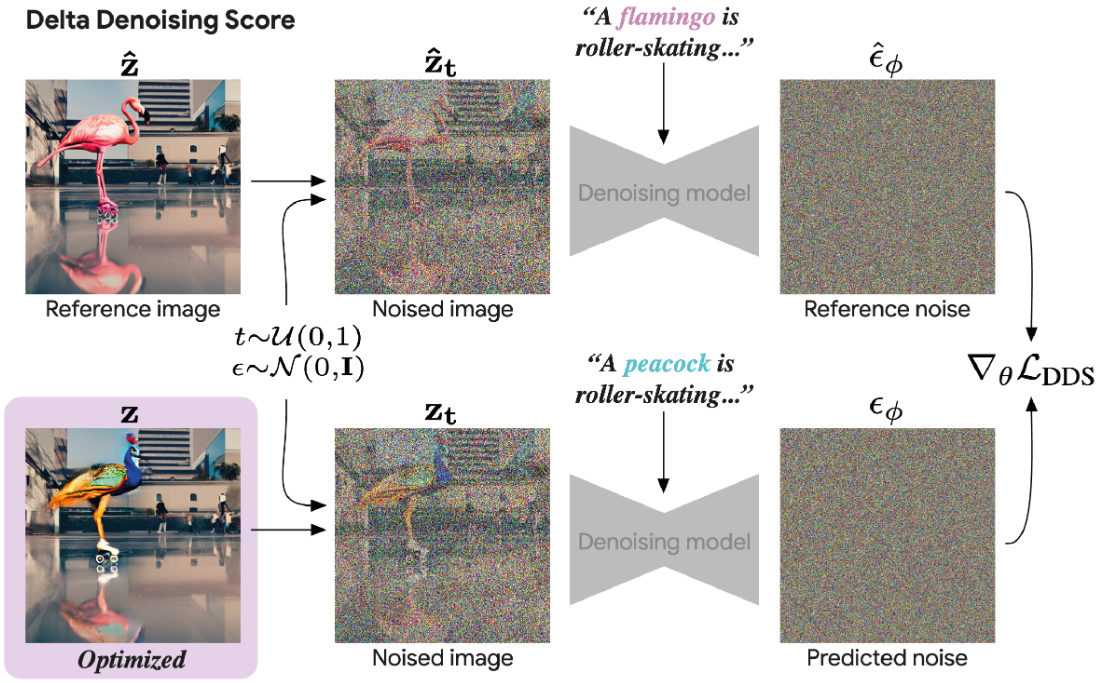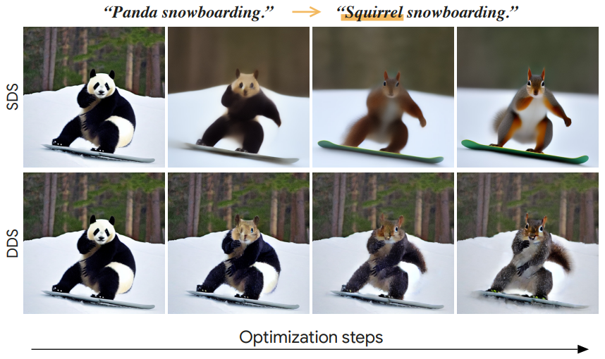 Score Distillation Sampling을 응용하여 최소한의 수정으로 이미지를 편집할 수 있는 Delta Denoising Score (DDS) 소개