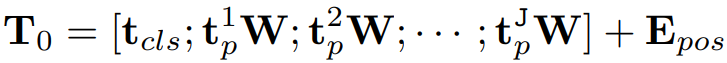 입력 이미지를 차원이 D인 J개의 토큰으로 projection 하고 position embedding.