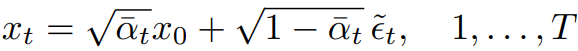 Forward process와 똑같아 보이지만 markov chain인 실제 forward process와 달리 t step에서 각각 노이즈를 샘플링하여 x1, . . . , xT를 구성한다. 각 노이즈는 통계적으로 독립적이며, 이로 인해 xt와 xt-1이 더 멀리 떨어져 있고 더 높은 분산을 가진다.